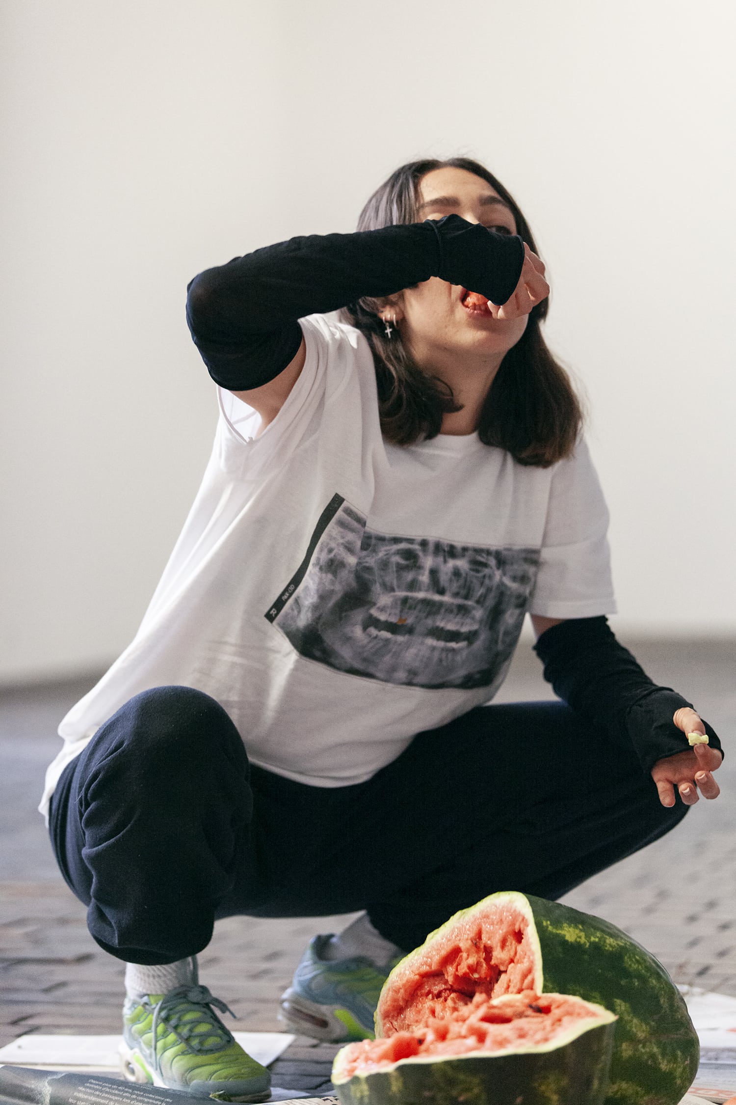 Nikima Jagudajev (b. 1990) is a Brooklyn based choreographer/dancer. Her work has been presented in NY at the NotFestival, the Upstart Festival, STUFFED @ Judson Church, the WAH center and Glasshouse Gallery. Abroad, her work has been at the Leopold Museum in Vienna, the Marrakech Biennale, MoMA P.S.1 and at PAF. She was a 2016 DanceWEB scholarship recipient.