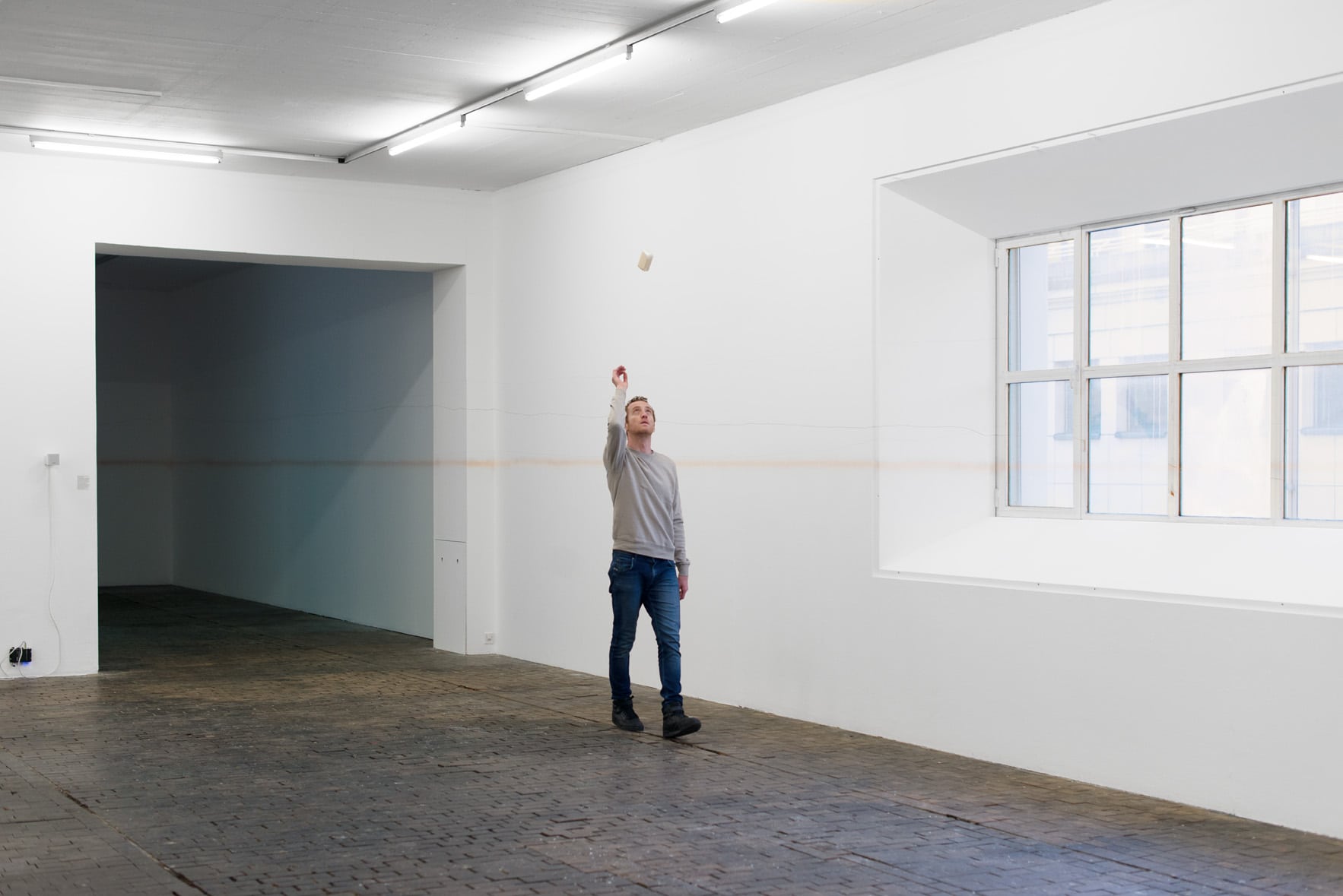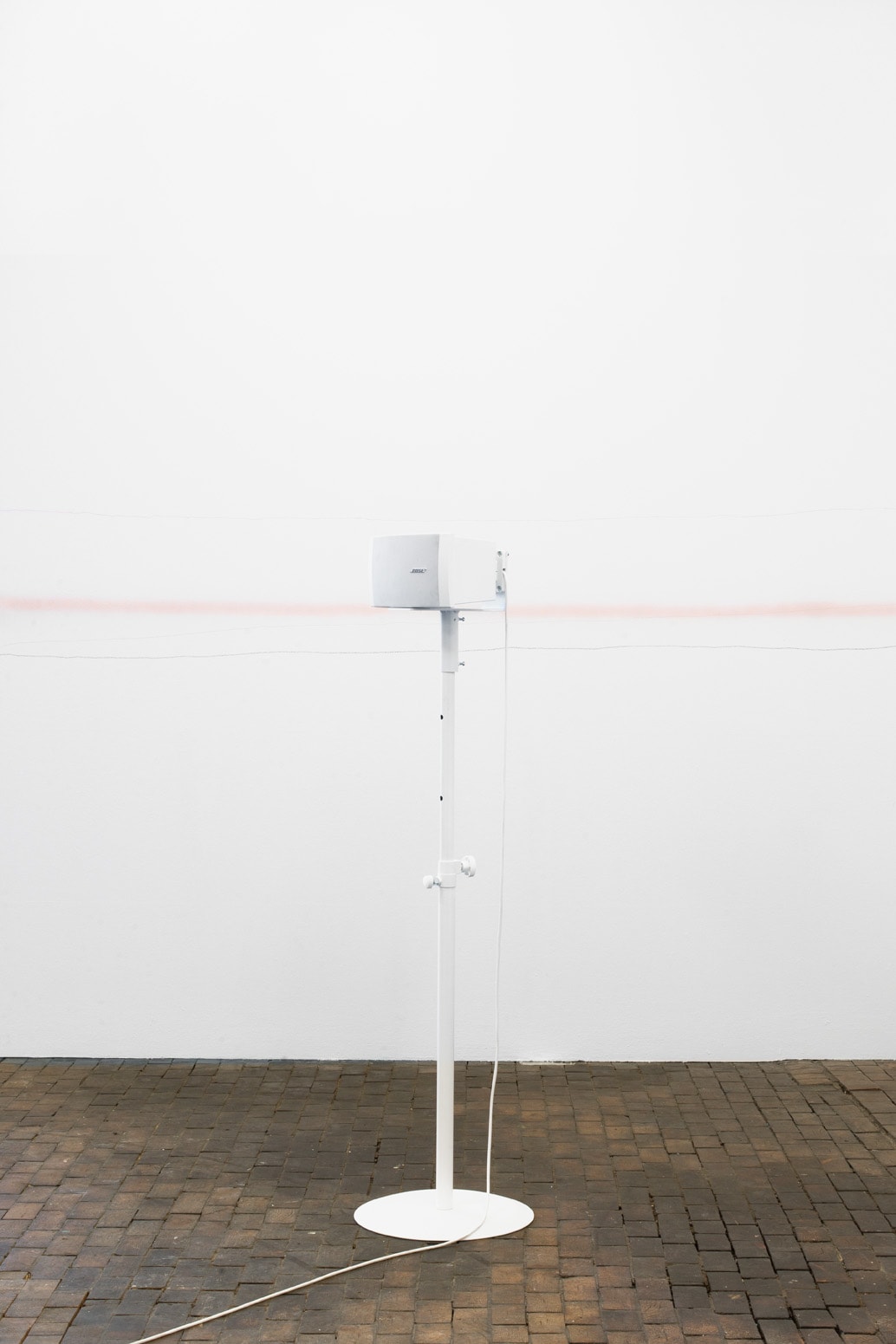 DRAG DRAG SOLO as an entirety takes its title from a ten-minute silent film by Spooner, commissioned by the Centre d’Art Contemporain Genève for their Biennale de l’Image en Mouvement in 2016. The film absorbs, and is affected by sounds in its proximity, which have thus far included Bruce Nauman’s film Violent Incident, live radio, an alarm clock, as well as sound works by Spooner herself. Considering the chance to be thrown out of sync by sources outside of oneself, DRAG DRAG SOLO—both film and exhibition—equally contain an awkward subtext; the politics between collaboration and solo performance in our digital and carnal present.