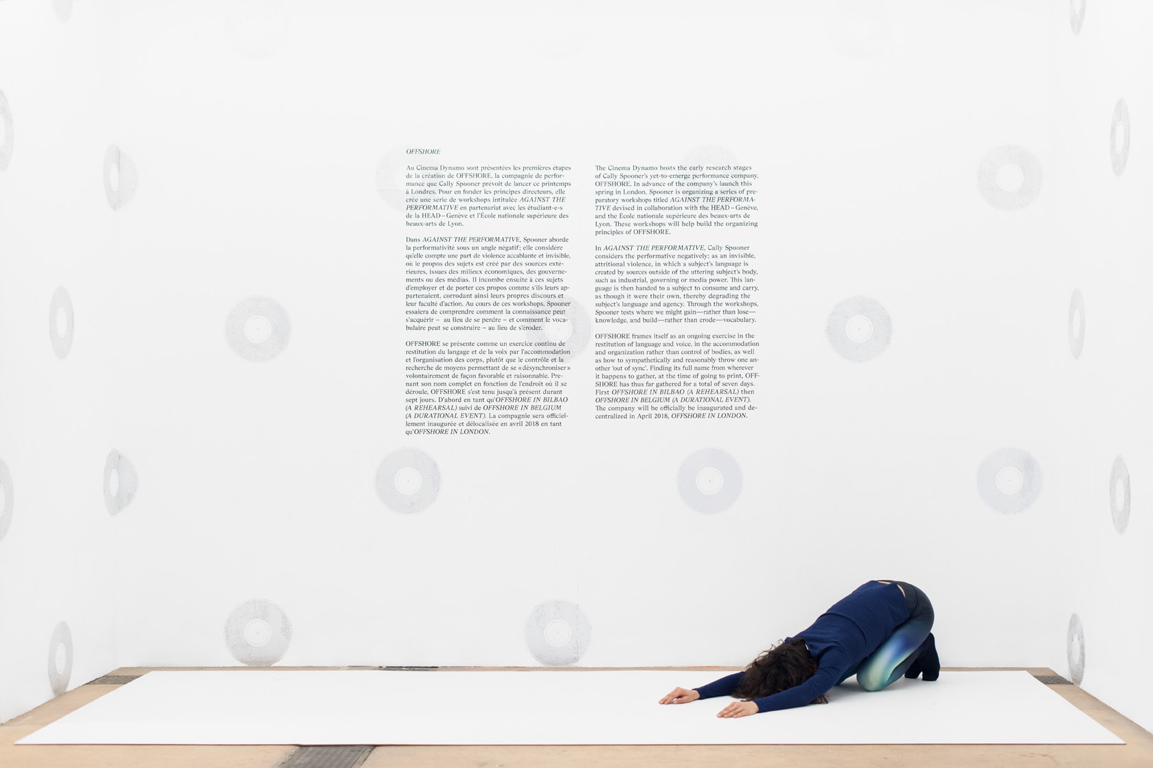 Finally, off-site and in the Cinema Dynamo at Centre d’Art Contemporain Genève will be the earliest research stages of Spooner’s yet-to-emerge performance company, OFFSHORE. In advance of its launch this spring in London (as the outcome of Spooner’s Stanley Picker Fellowship, and the beginning of this long term project), Spooner will create a series of workshops in collaboration with HEAD – Genève, Geneva University of Art and Design and the École Nationale Supérieure des Beaux-Arts de Lyon’s Post Performance Future students, titled AGAINST THE PERFORMATIVE.