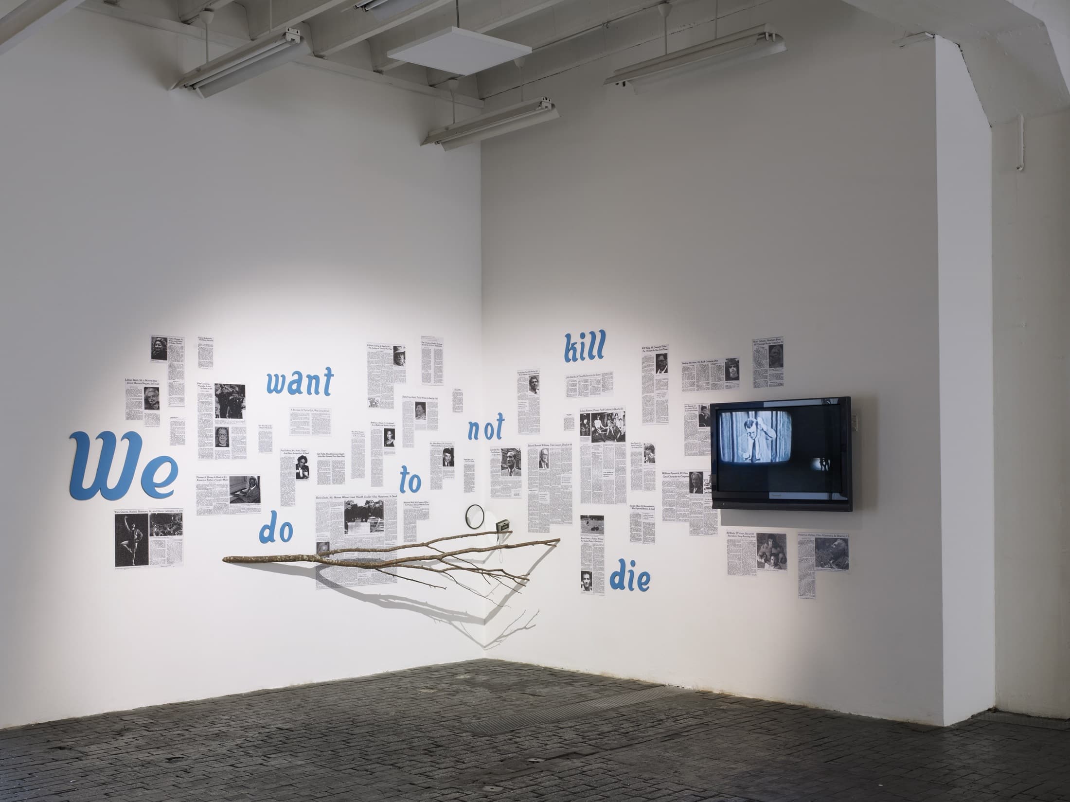 In her artistic practice, Edy Ferguson uses multiple media – sound and video installations, drawing, painting, sculpture, photography and performance – and multiple references drawn from film iconography, rock music and the spirit of punk, especially from the years 1960–1970. Each work combines an array of references which converge and interreact in the exhibition to weave nothing less than a web of values and meanings. The exhibition is conceived as a single and articulated “Gesamtkunstwerk”, featuring the artist’s vision in its full complexity, with all of its stratifications.
