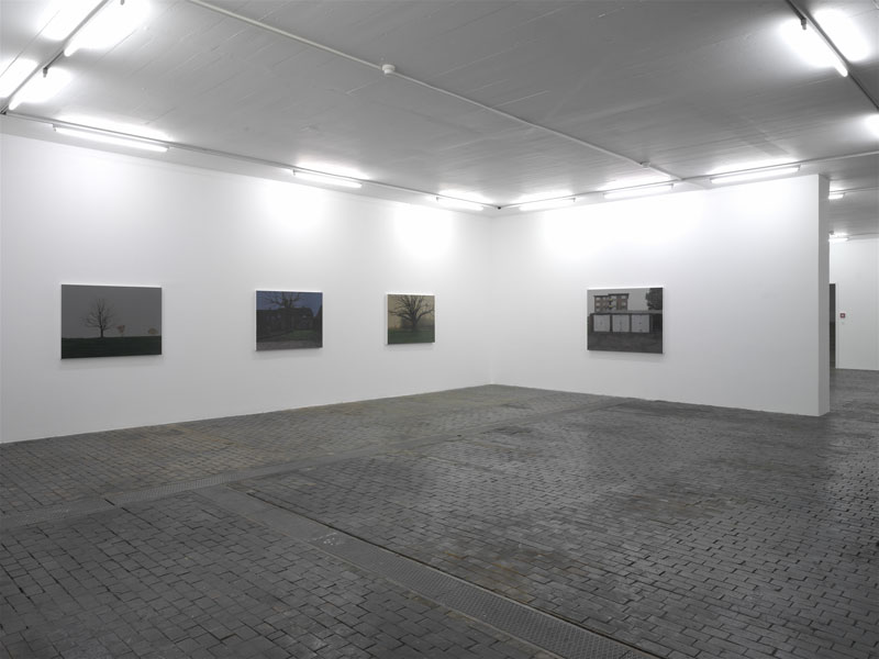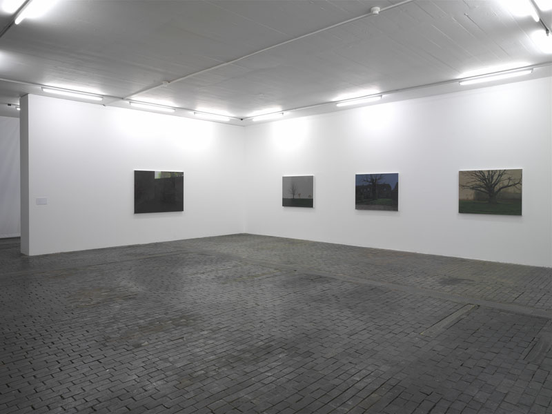 Like the Victorian colourist Atkinson Grimshaw, George Shaw is above all attuned to the refinement of light. The meticulous application of Humbrol enamel paint achieves an extraordinary luminescence with its accumulated mood, which is both elegiac and anticipatory. His paintings articulate a tension between sunshine and rain, dusk and day, shadow and luminosity, in a way which brings forward a primary role of landscape as a mute witness – an amoral, indifferent environment. Shaw’s paintings describe the imprint of time and place when the experience of nothing happening becomes its own event. The banality becomes ceremonial, within their stillness, these scenes from suburbia present their world as it may appear to ghosts: there is a presence of death in these prosaic places, as death might be described by absence.