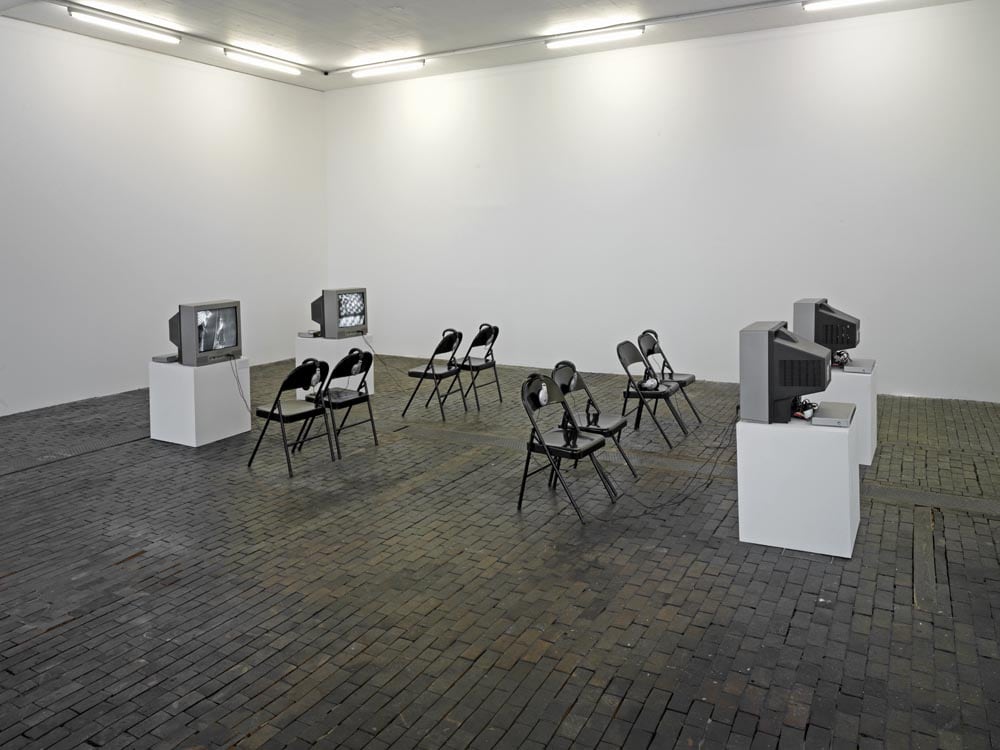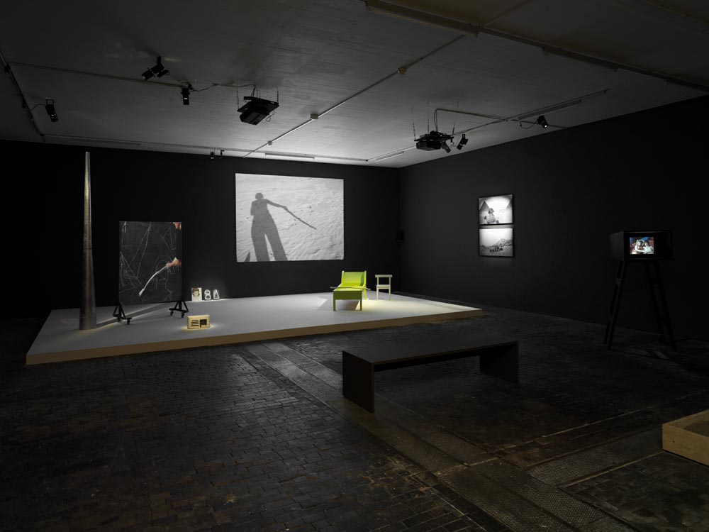 “The Shape, the Scent, the Feel of Things” (2004) is a work in progress consisting of an installation and a performance, initially presented in the Dia:Beacon, New York. Resulting from an ongoing concern with ritual and performance, the project highlights Jonas’ basic interest in the beginning of aesthetic expression in other cultures in relation to the Western world. Nowhere else in her oeuvre has Jonas awarded such a pivotal role to narrative and text as in this project. Despite the strong theatrical thrust of the work, it remains poised between theater and performance art. Furthermore, it ispartly inspired by a series of events and encounters in the artist’s life. Indeed it goes back to a journey made to the Southwest USA in the late 50s, where Jonas had the opportunity to see several Hopi (Native American Indians) rituals. Later in the mid 1980, Jonas came across a reference to these rites in an essay by German historian Aby Warburg, related to his own trip to the Southwest in the 19th century.In his investigations Warburg employed photographs of artworks from different cultures, recombined and cross referenced them to produce, among others, a display of particular gestures as portrayed by Greeks, Romans, Indians and so on. This methodology was particularly inspiring to Jonas.