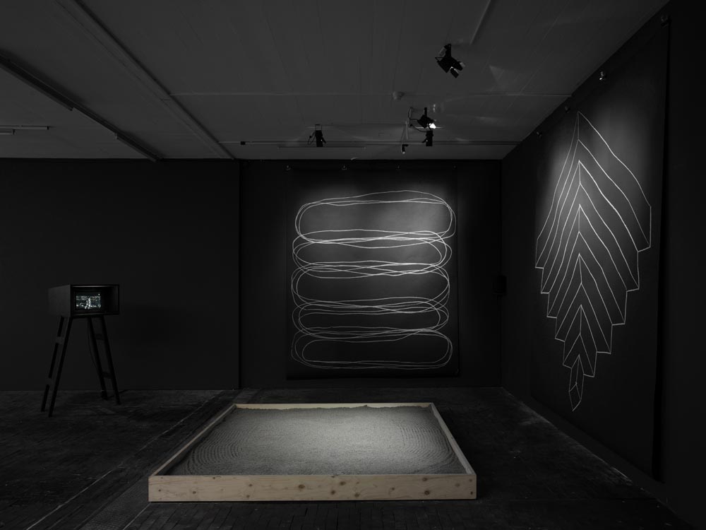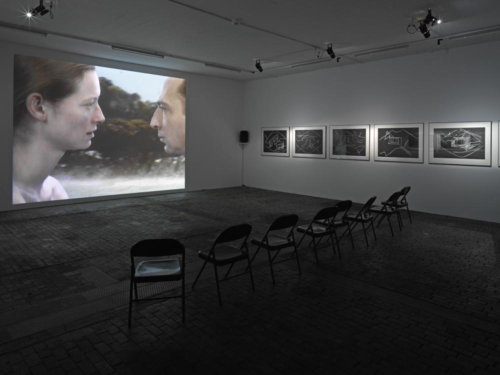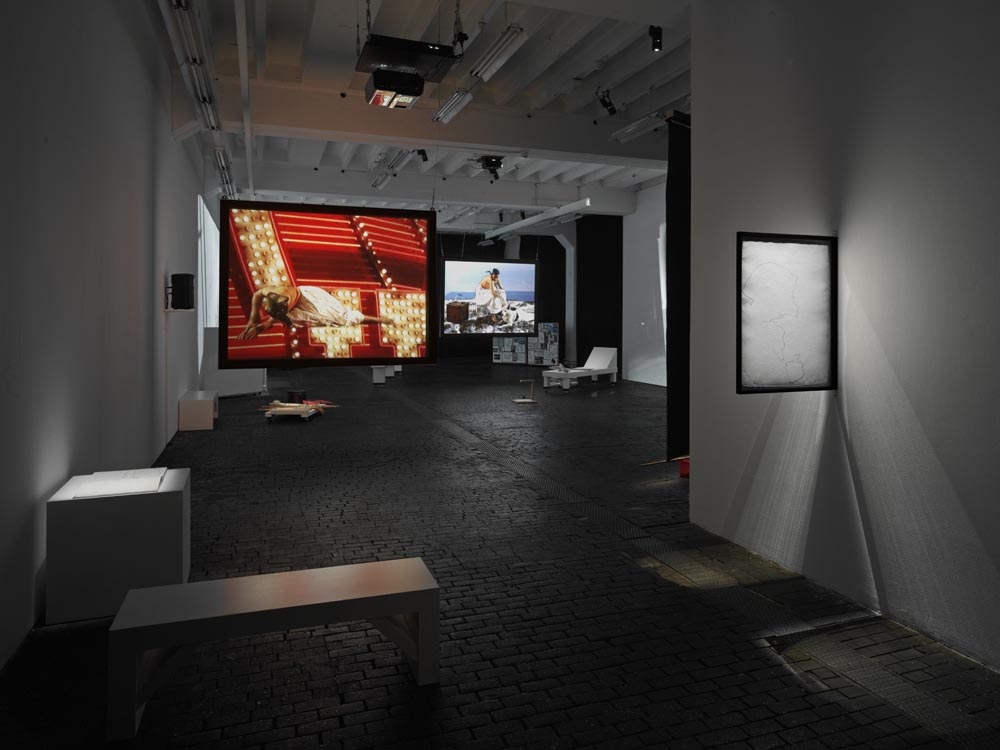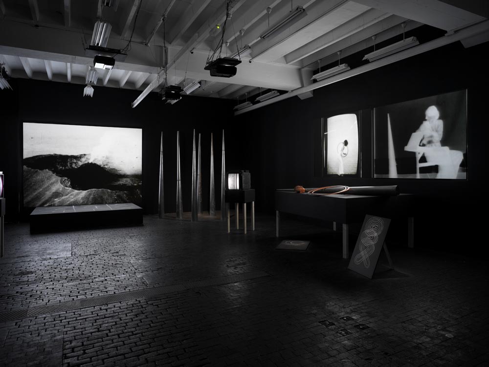 It is the myth of Helen of Troy as viewed by the Imagist poet H.D. (Hilda Doolittle) which is revisited in “Lines of Sand” (2002) commissioned by Documenta 11, Jonas wanted to reveal the fact that for centuries the accepted myth – a war fought over a woman – was preferred to a more subtle truth. Whilst the original myth tells of the seduction and abduction of Helen, H.D quotes other classical sources, which suggest a different story (that she remained in Egypt, never setting foot in Troy). Jonas first made an installation and then a performance that draw these various threads together into an interlocking series of tableaux, stage sets consisting of video, photographs, drawings and objects. Finally, “Volcano Saga” (1985-1989) is an older work where Jonas began to distill her ideas around the female character, using the story as a mirror, and the volcanic landscape of an island as a representation of the narrative. “Volcanic Saga” takes place in Iceland, and is inspired by a 13th century story entitled “Laxdaela Saga”, narrating the tale of a woman who married four times.