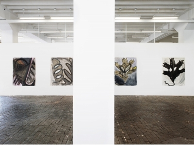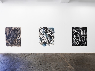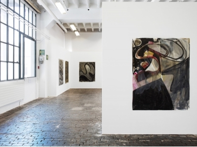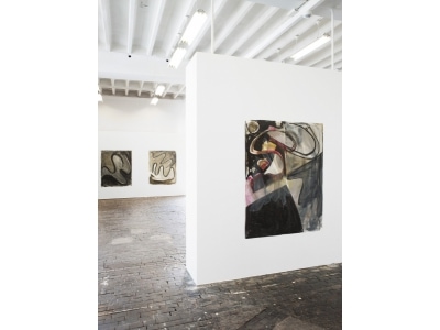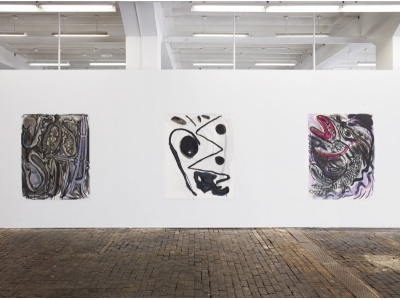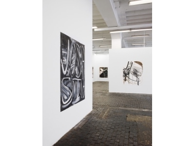 Smith reworks the central myths and clichés of modern painting echoing in the process the vitality of an expressionist mode of working as well as elements of appropriation art and institutional critique. The artist is remarkable for creating situations in which an excessive flood of visual information (from the multitude of works he creates) is offered to the viewer. In this overwhelming visual mass, he brings together the various genres of painting that he has created over the last few years: the “name paintings” in which ever new variations of the commonplace name Josh Smith serve as the motif for the pictures; the “palette paintings” on which he mixes the pigment for his pictures; the “announcements” that are simultaneously posters for the artist’s shows; and finally the “collages” in which found materials such as posters, newspaper clippings or maps are melded on top of each other together with his own drawings and prints. In this crossover, subjective experience and external living conditions become woven together on the surface of the picture.