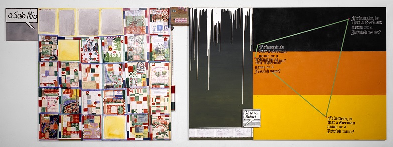Building on an extensive painting lexicon, Rochelle Feinstein employs an array of styles and media, such as silkscreen, photography and assemblage, hard-edged graphic compositions as well as expressionist factures.