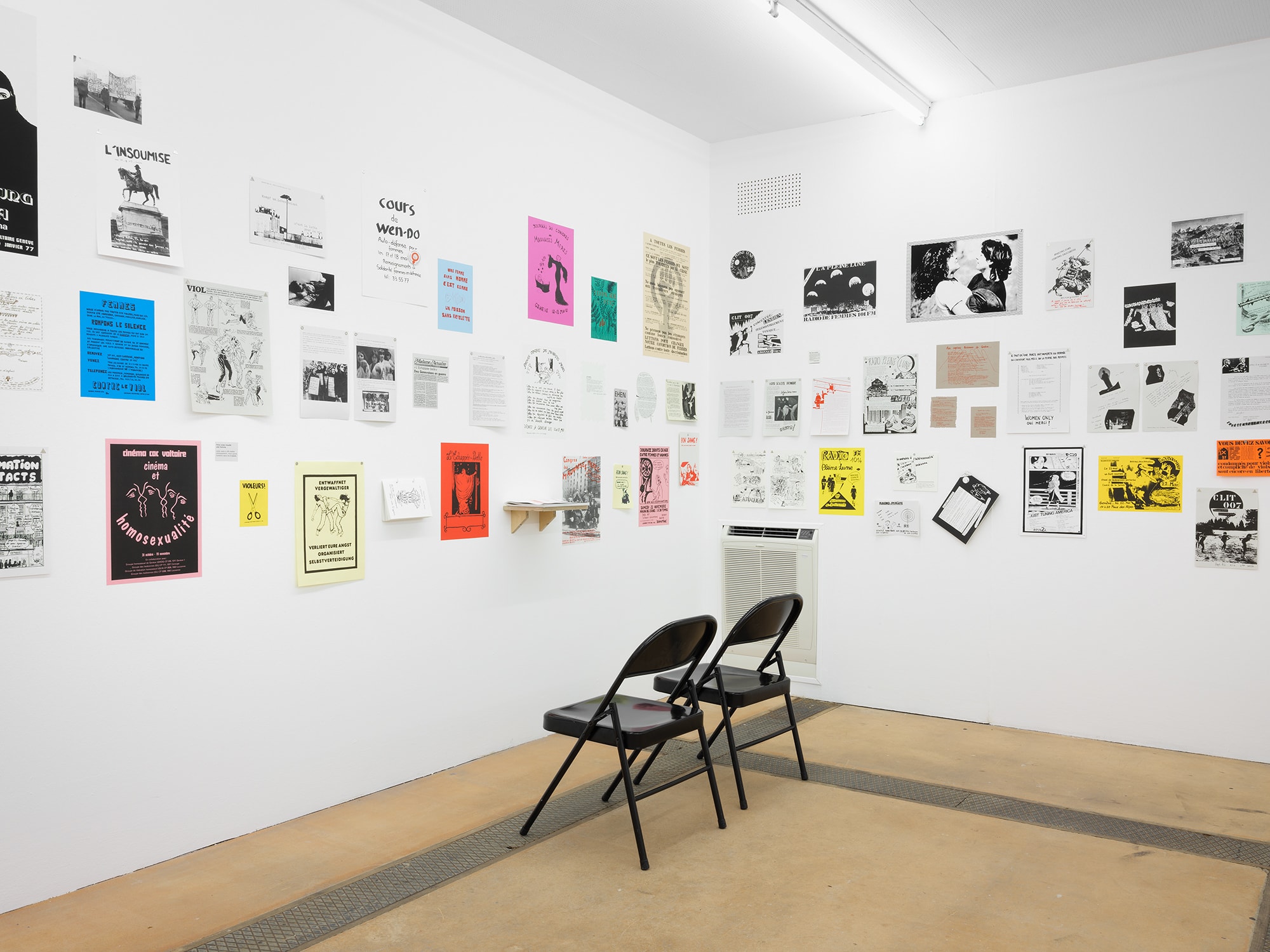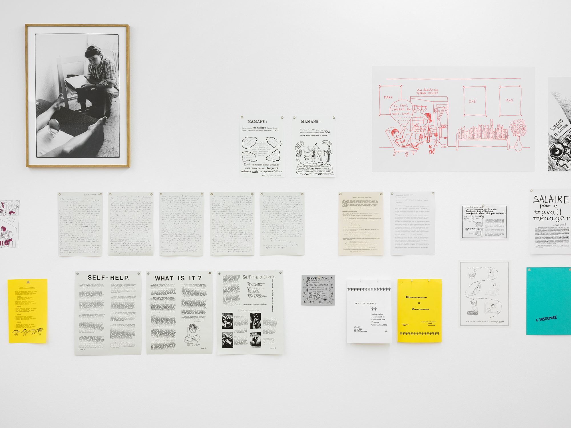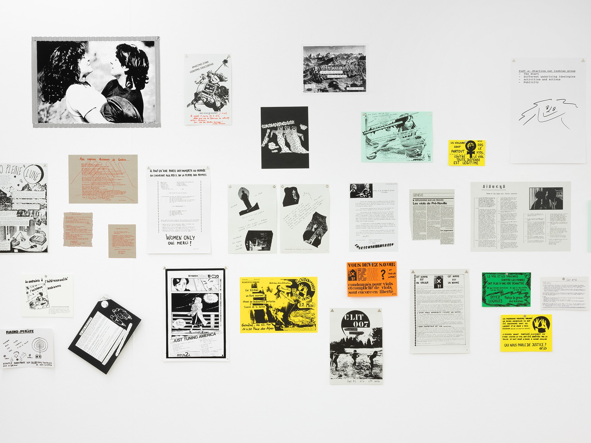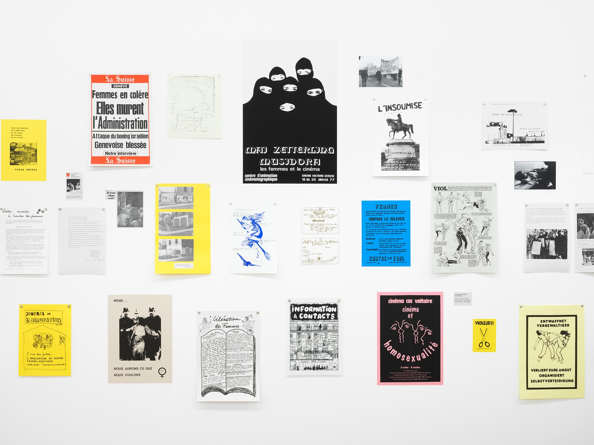 Facing the segregation that took place at the hands of the American cultural authorities in the 1980s , the collective Group Material chose to use the format of the exhibition as a means of protest. Their exhibitions have brought together a wide range of practices, ethnic groups and sexual orientations, overthrowing art community hierarchies and the domination exercised by a white, male, and heteronormative American culture. Drawing freely from the strategies elaborated by Group Material, Rosa Brux proposes a critical and personal exhibition of the MLF (Women’s liberation movement) of Geneva through a corpus of documents preserved essentially at the Archives contestataires.
