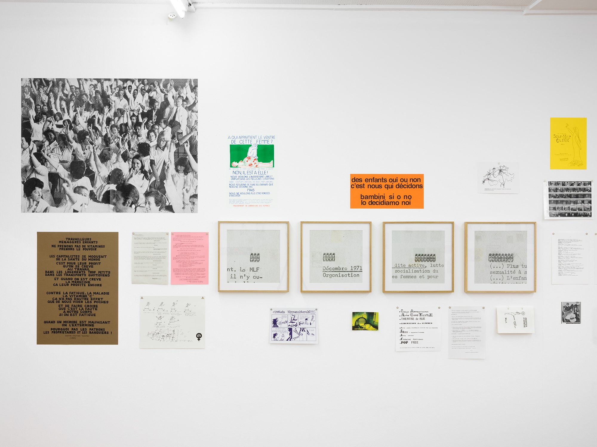 Through the diversity of its demands and its means of action (self-defense courses, self-help training offering women the possibility of examining their own bodies, remuneration for domestic work, self-management of a place allowing women to discuss freely, free abortion, recognition of the rights of lesbians in all countries, etc.) the WLM (Women’s Liberation Movement) of Geneva brought together a multiplicity of reformist and radical groups. Contrary to a hegemonic vision of this movement, the exhibition attempts to present the modes of organization of women united by struggles, feelings, activities that are also conducive to conflicts and even misunderstandings. The