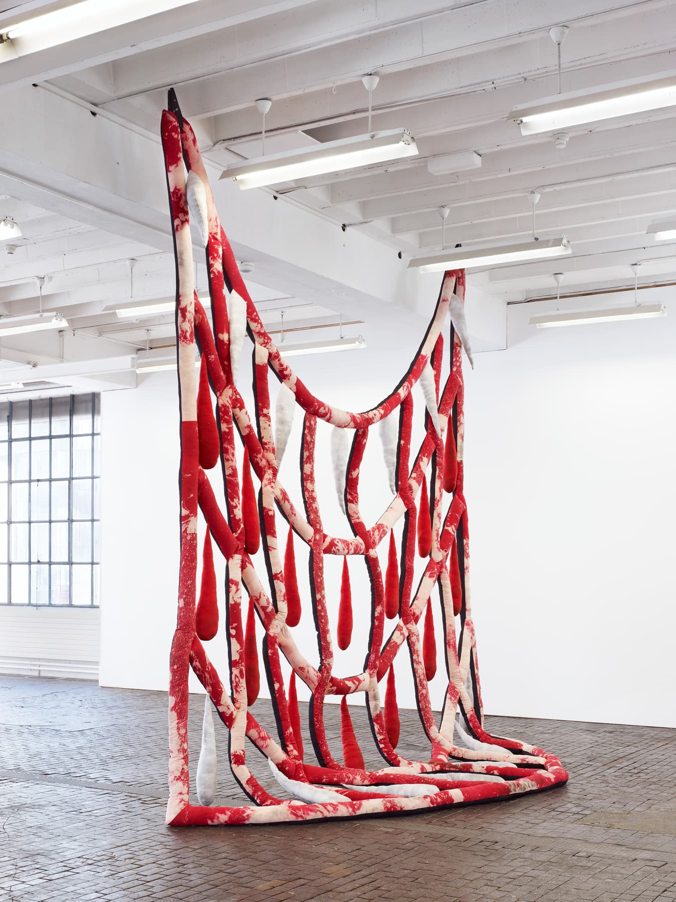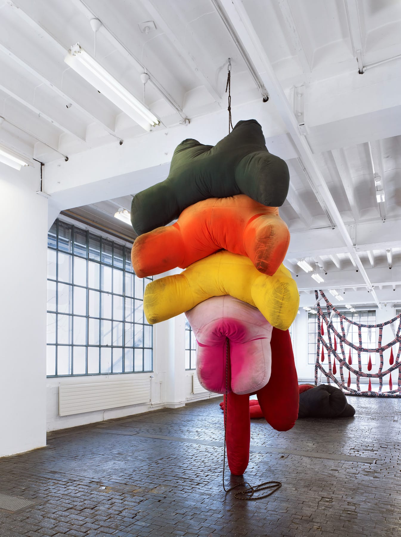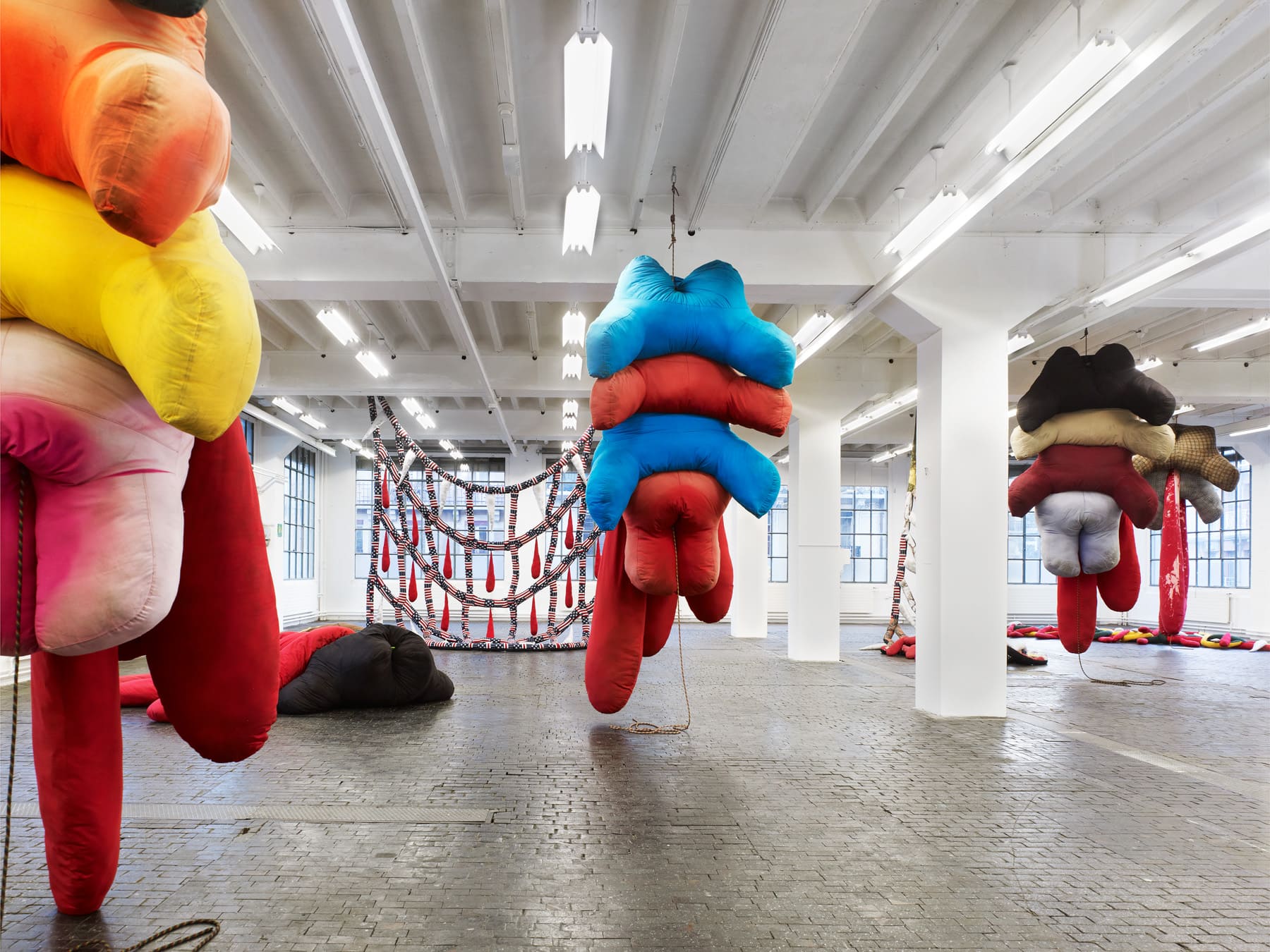 The artist confronts the elements and forms of minimalism – one of whose aims was to eliminate all traces of the author (as if the work/object was self-generated) – reinterpreting them with a hypercorporeal, brutal and gestural expressionism that liberates the repressed urges of the unconscious. The minimalists’ “less is more” now reads as the “more is more” of a hyperconsumer society. The artist counterpoints this modernist heritage with a multifarious body of work that operates via transformation, mimicry and assimilation – strategies that are at the fore in the artist’s soft sculptures.