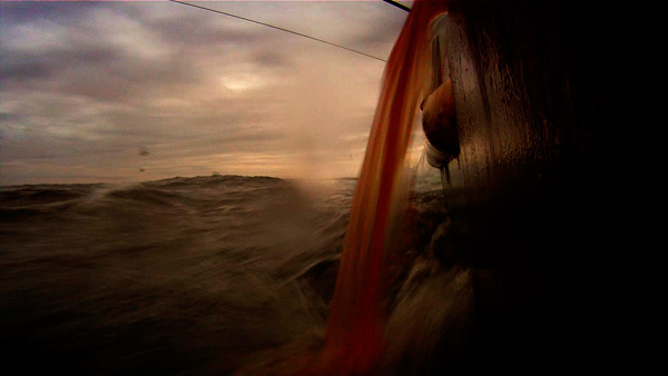Les réalisateurs ont jeté leur dévolu sur de petites caméras GoPro fixées sur les casques des pêcheurs, sur les cordes et chaînes ou encore sur des perches leur permettant de filmer aussi bien en surface que sous l’eau. En résultent des images fascinantes, entre ciel et terre, où les éléments naturels et mécaniques s’entrechoquent et surgissent hors de l’obscurité en des couleurs phosphorescentes, proches de l’abstraction. Le tout accompagné par un traitement sonore hypnotique passant des craquements métalliques diffractés par l’univers sous-marin, à la clarté des sons de vagues, d’oiseaux ou du vent en surface.