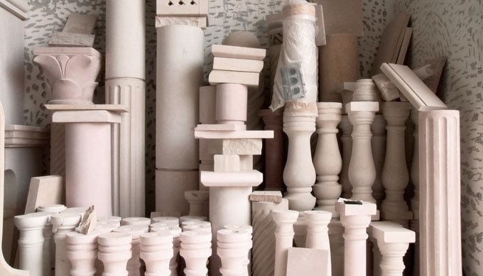 Fabriques (2010), nouveau film produit pour l’exposition et élément central de cette installation, a été réalisé dans les environs de Msaken (Tunisie) dans plusieurs manufactures d’éléments décoratifs. Signes ostentatoires de prestige social, ces ornements prolifèrent sur les maisons privées de cette région marquée par une forte émigration vers l’Europe. Les portraits des ouvriers de ces manufactures (main d’oeuvre bon marché issue d’une migration interne), entourés d’ornements entreposés ou exposés, rappellent sur un mode critique une tendance de la photographie orientaliste du début du XXe siècle, ayant recouru à des éléments architecturaux décoratifs comme accessoires exotiques.