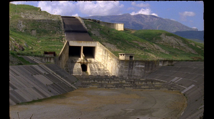 Le film est présenté en première au Centre d’Art Contemporain Genève. Faisant partie d’un dispositif comprenant plusieurs autres travaux sur lesquels l’artiste travaille actuellement, il explore un lieu fantomatique et désolé, Diga Blufi, un barrage situé en Sicile centrale. Diga Blufi est l’une des plus impressionnantes « incompiute » du Sud italien: grandes œuvres publiques inachevées, souvent infiltrées par la mafia, et transformées par le temps en des sortes de « ruines à l’envers » – un concept de l’artiste américain Robert Smithson.