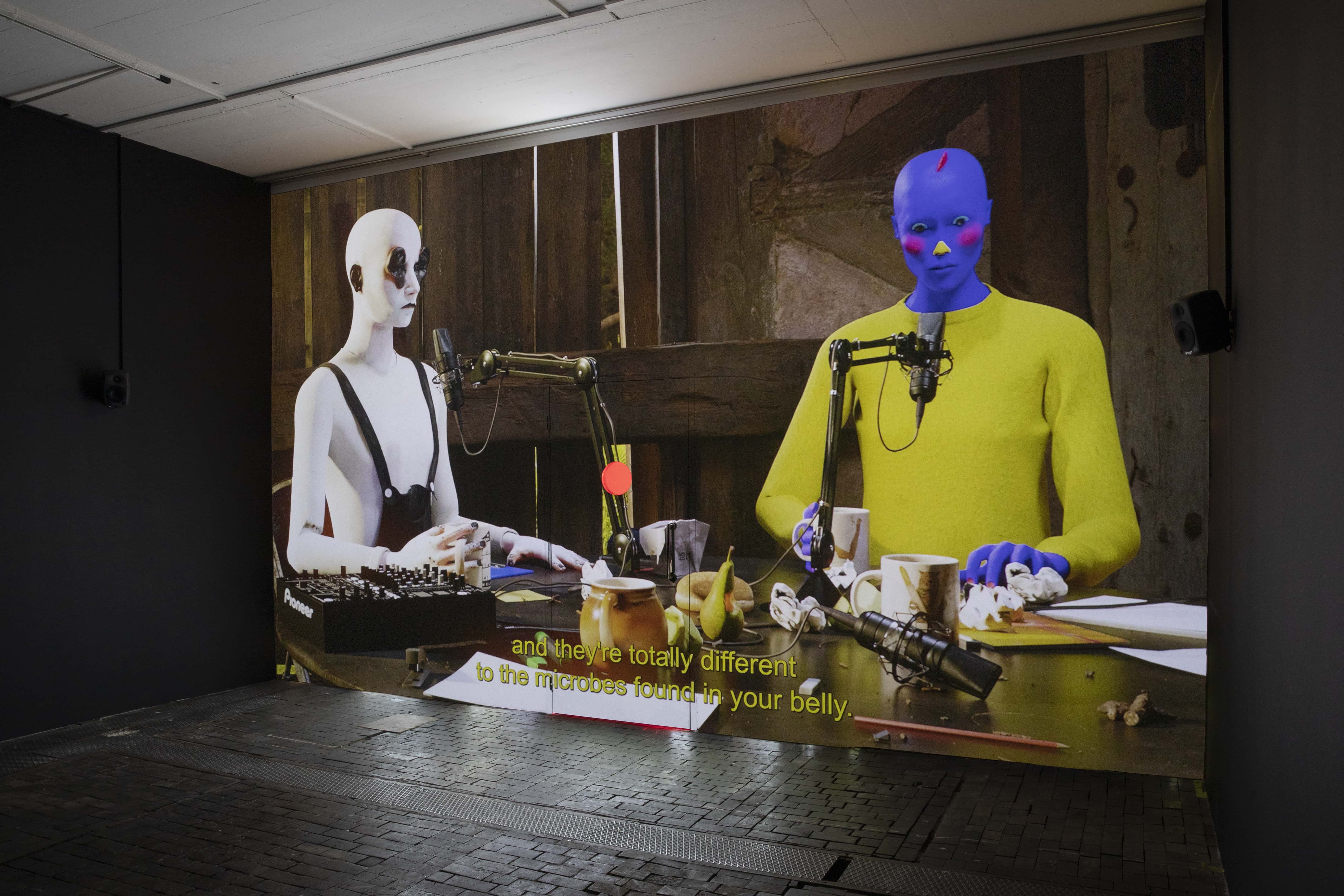 Sur invitation d’Andrea Bellini, co-commissaire de la Biennale, DIS présente en avant-première son film Everything But The World. Spécialement commandité et produit par le Centre d’Art Contemporain Genève pour la BIM’21, Everything But The World prends la forme d’un projet pilote, celui d’une série consacrée à l’homo sapiens : soit une exposition non linéaire d’histoire naturelle qui nous serait entièrement consacrée. Comme beaucoup d’autres œuvres dans l’exposition, Everything But The World traite du fossé entre la complexité de l’existence globale de l’humanité et la petitesse de nos vies privées. Le film interroge notre obsession pour « la fin du monde », tout en concédant l’arrogance avec laquelle nous parlons d’un monde et sa fin.